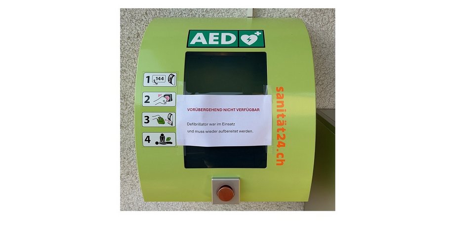 Der Defibrillator beim Gemeindehaus ist für ca. 1-2 Wochen ausser Betrieb. Wir danken für die Kenntnisnahme und informieren, wenn er wieder funktionstüchtig ist.